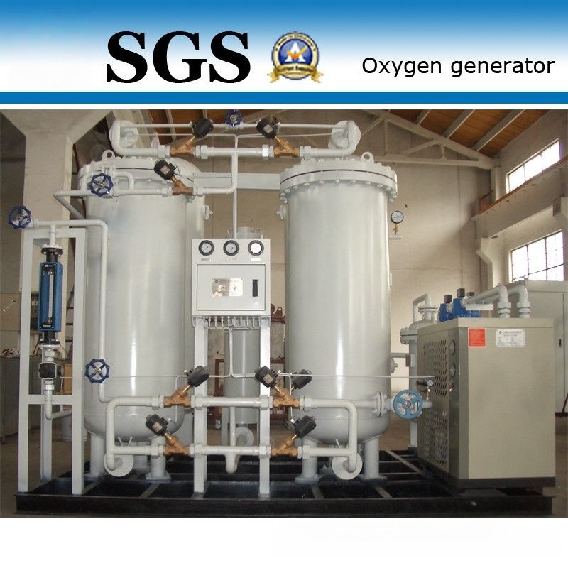 อากาศดันผ่านโมดูล PSA ของ Twin Tower ที่เชื่อมต่อกันด้วยวาล์วเปลี่ยนอัตโนมัติ หลังจากผ่านเครื่องแห้งเย็นแล้วอากาศจะแห้งอากาศกดแห้งแล้วเข้าสัมผัสกับเตียงของ Zeolite Molecular Sieve (ZMS), ที่ชอบสับซ้อนโมเลกุลไนโตรเจน