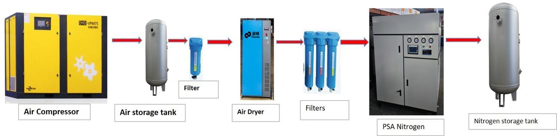 วัตถุดิบสําหรับ PSA Nitrogen Generator คืออากาศ ซึ่งมีอยู่มากมายและมีให้บริการง่ายๆ เครื่องกําเนิดใช้อุปกรณ์เจาะโมเลกุล เพื่อแยกโมเลกุลไนโตรเจนจากก๊าซอื่น ๆ ในอากาศระบบนี้ถูกออกแบบมาเพื่อผลิตไนโตรเจนความบริสุทธิ์สูง ด้วยระดับความบริสุทธิ์สูงถึง 99.99%